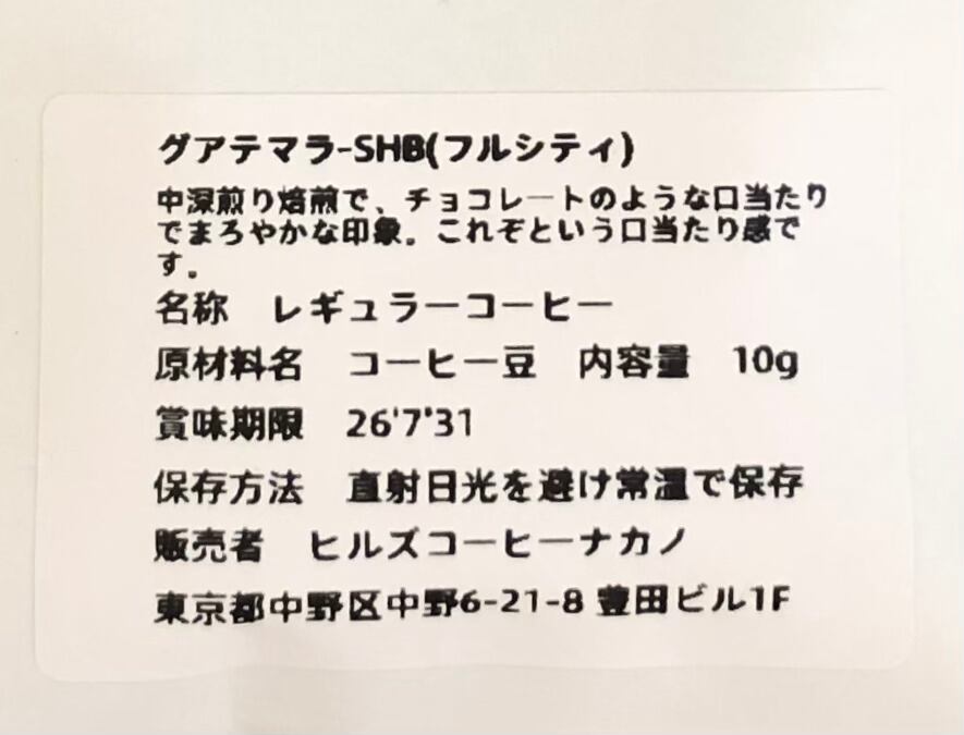 ヒルズコーヒー ナカノ「グアテマラ-SHB」(フルシティ)